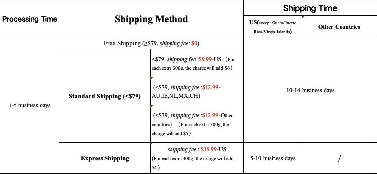 Orders under US$79, shipping rates are as follows.